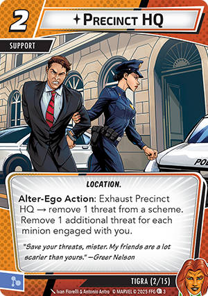 Since the villain’s main scheme is Under Surveillance and watched by Monica Chang and her Surveillance Teams, Greer Nelson can fully prepare to unleash the fury of Tigra at the proper time. As a Skilled Investigator she can deliver a Concussive Blow when necessary.